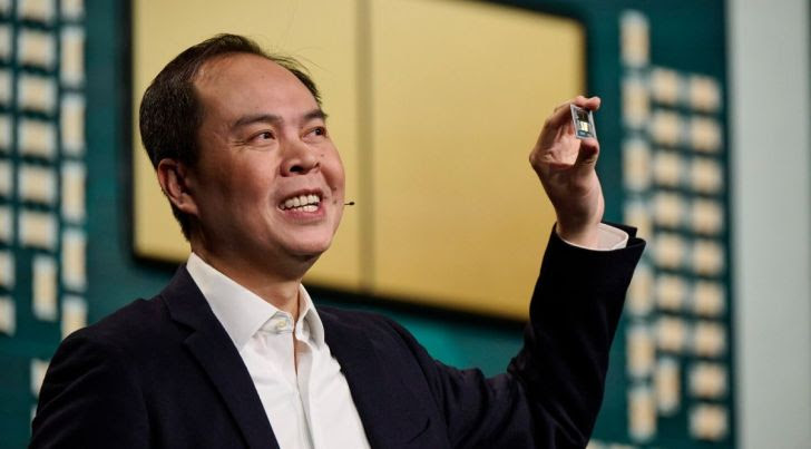 Jack Huynh, ejecutivo de AMD, muestra un chip Fire Range HX3D para notebooks.